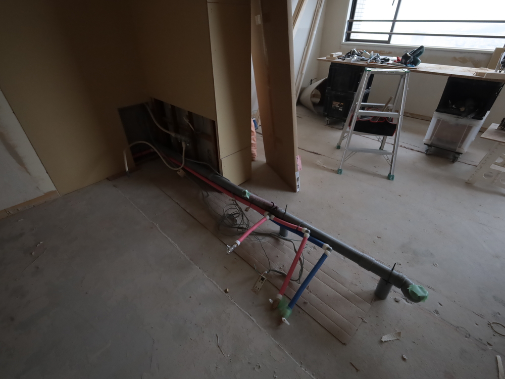 キッチンスペースの施工中