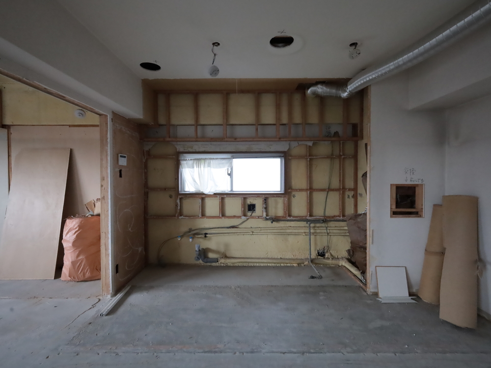 キッチンスペースの施工中