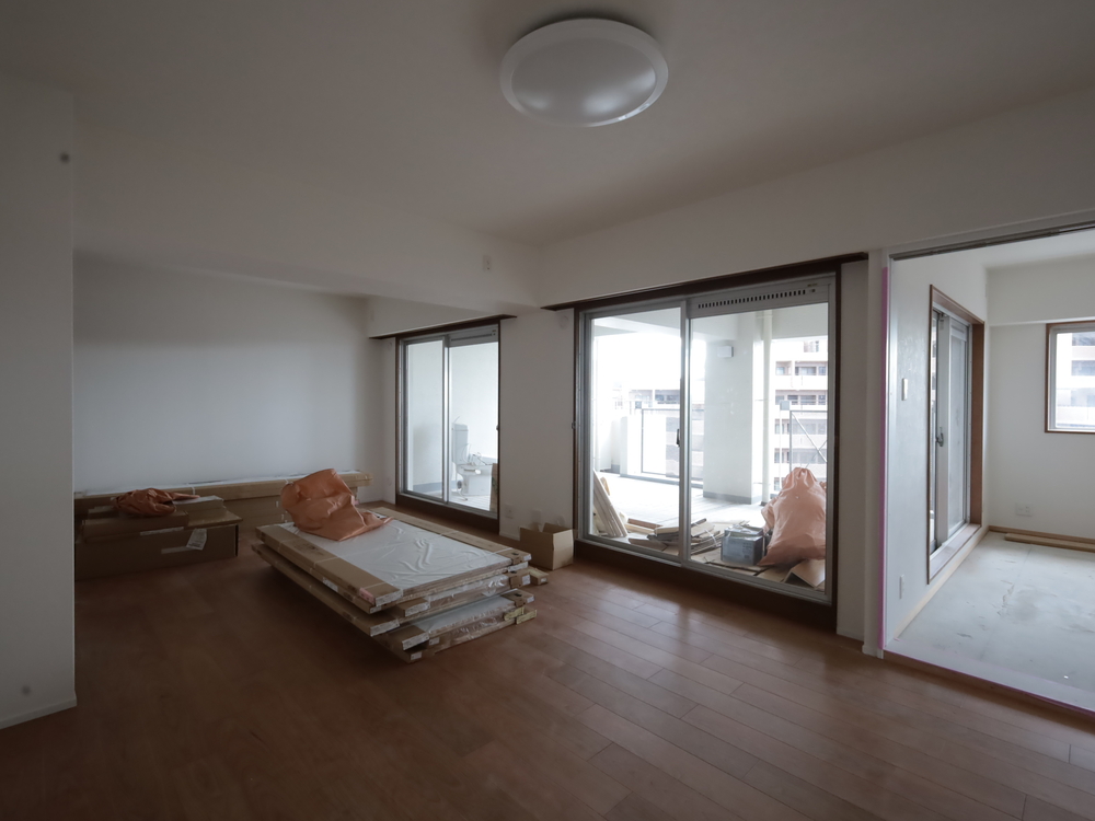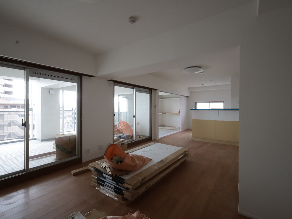 リビングの施工中