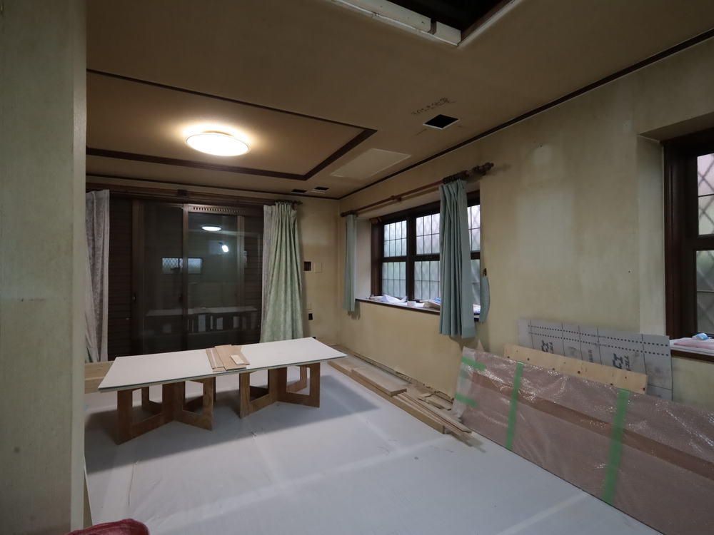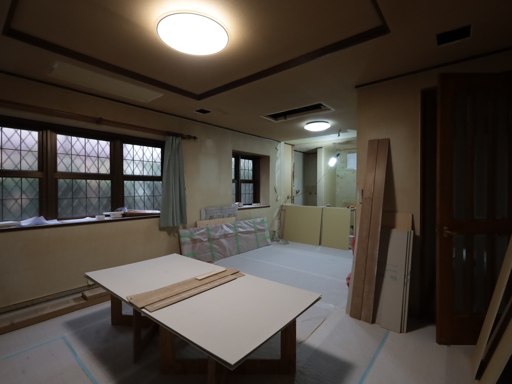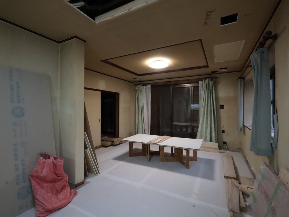 リビングの施工中