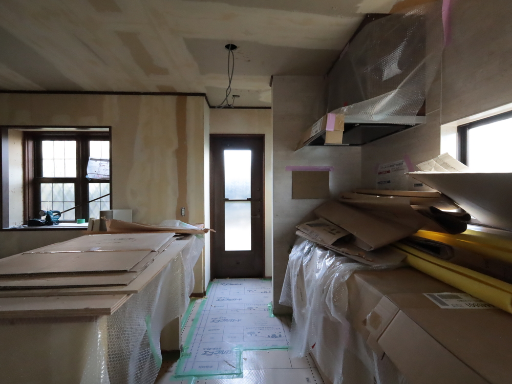 キッチンスペースの施工中