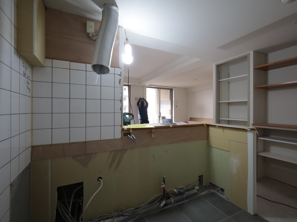 キッチンスペースの施工中