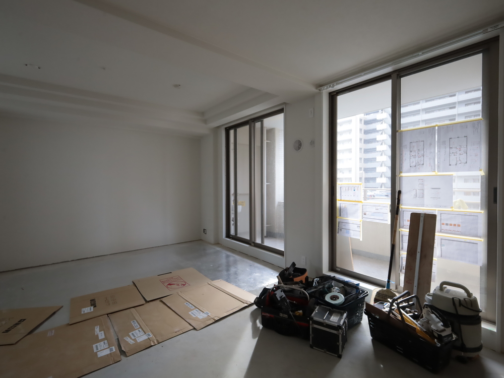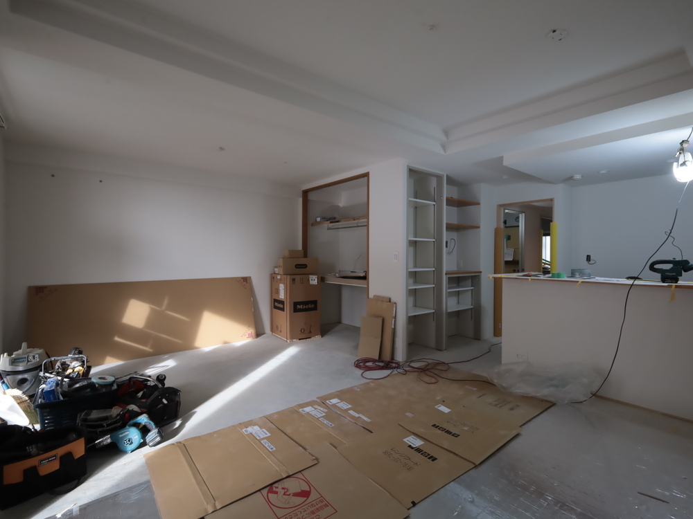 リビングの施工中