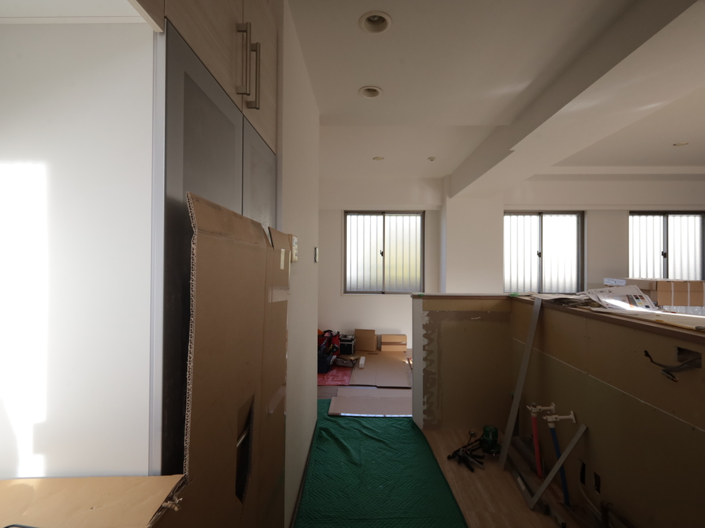 キッチンスペースの施工中