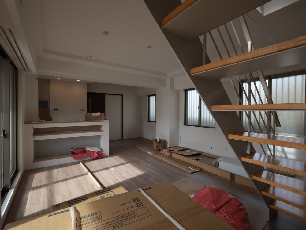 リビングの施工中