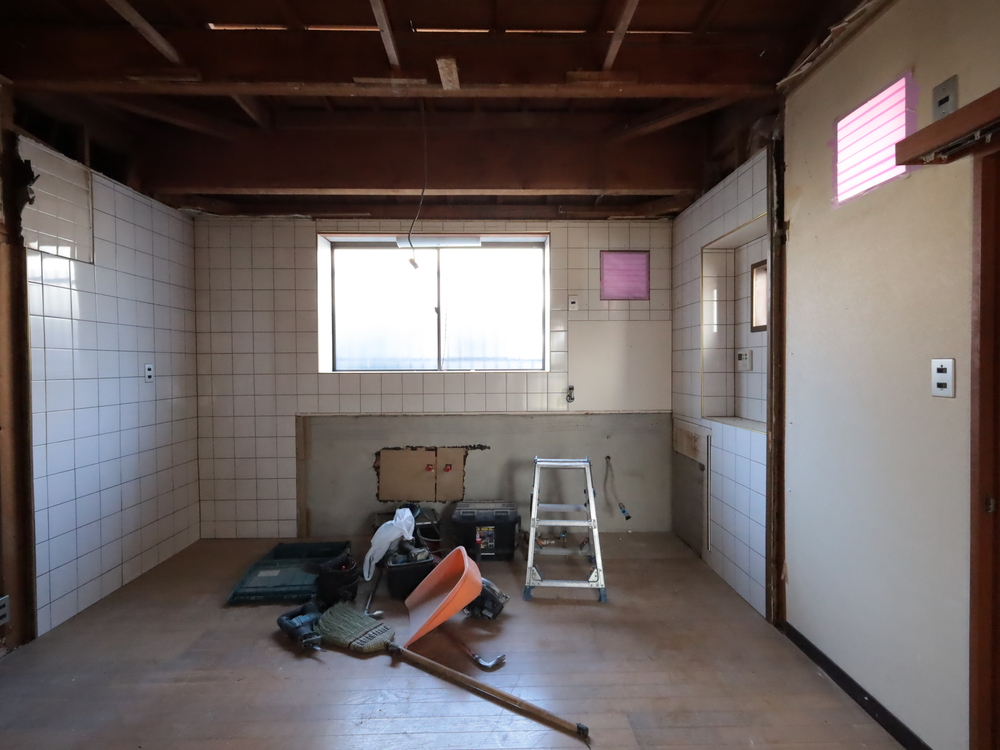 キッチンスペースの施工中