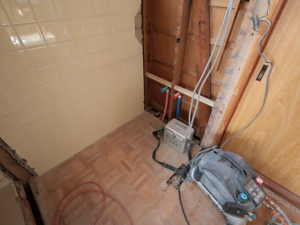 廊下の施工中