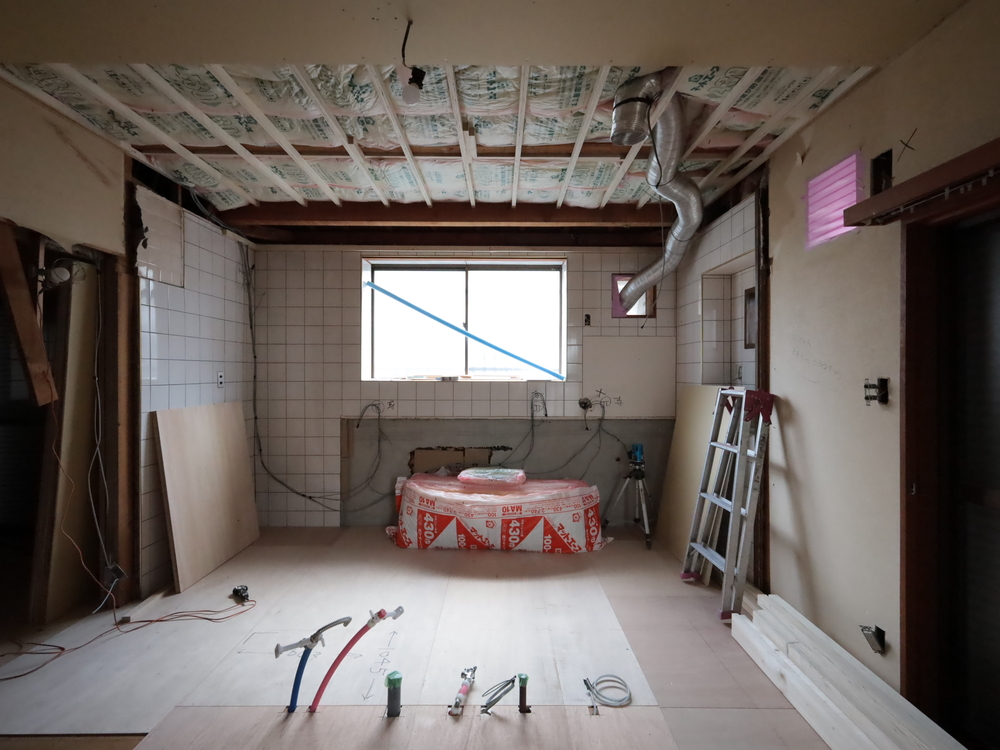 キッチンスペースの施工中