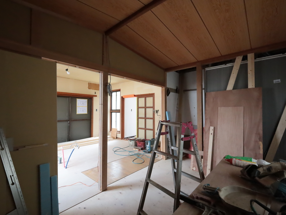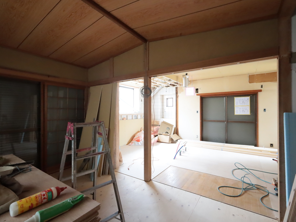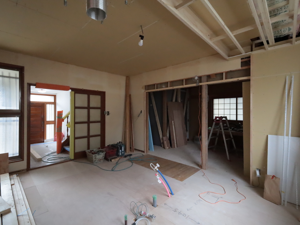 リビングの施工中