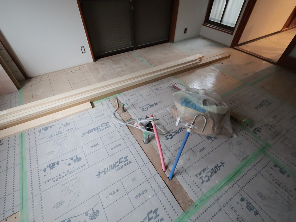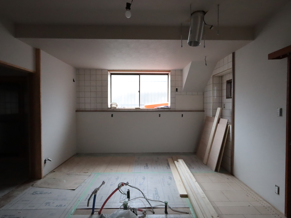キッチンスペースの施工中