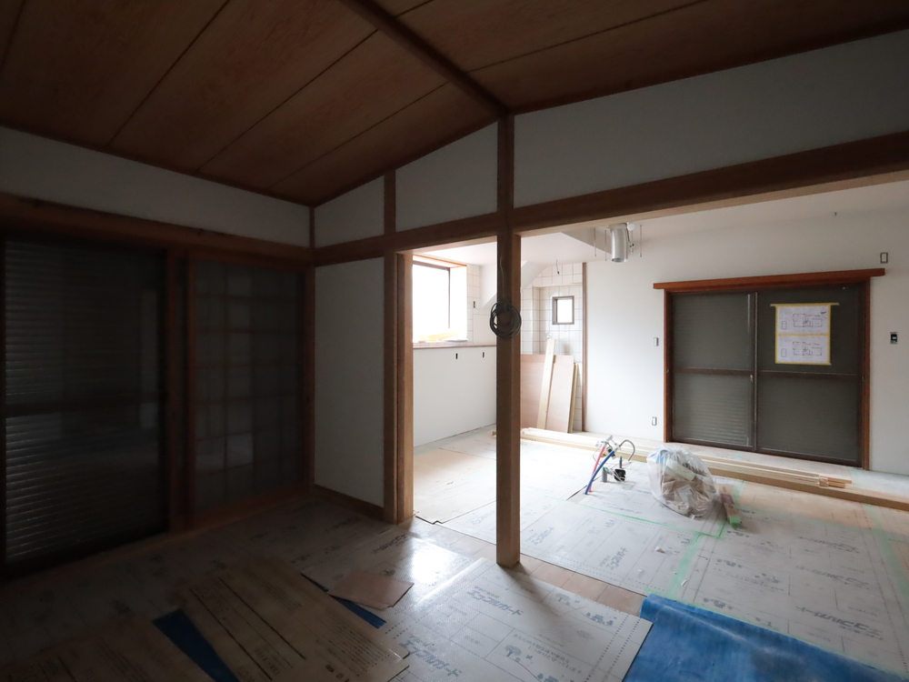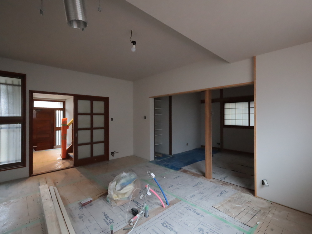 リビングの施工中