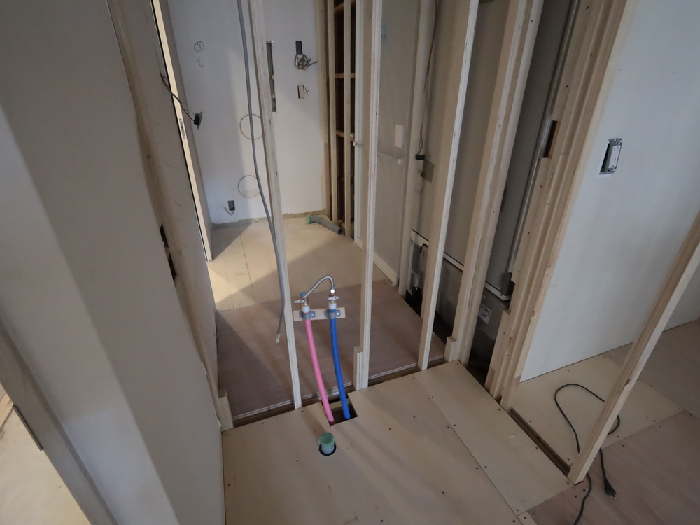 洗面室の施工中