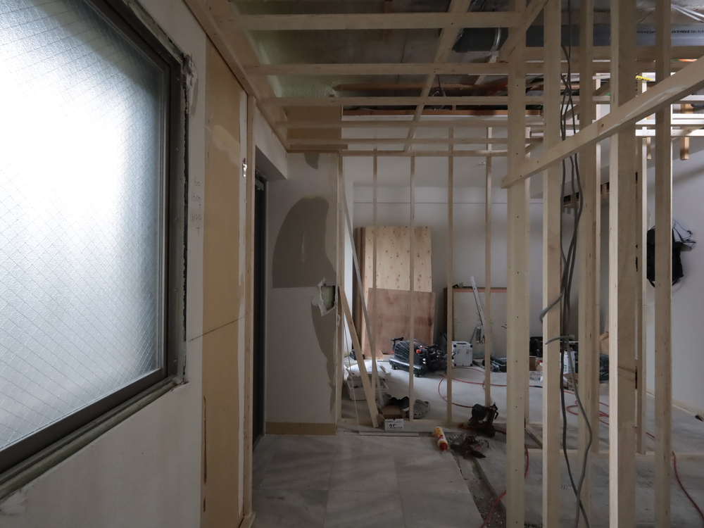 玄関の施工中