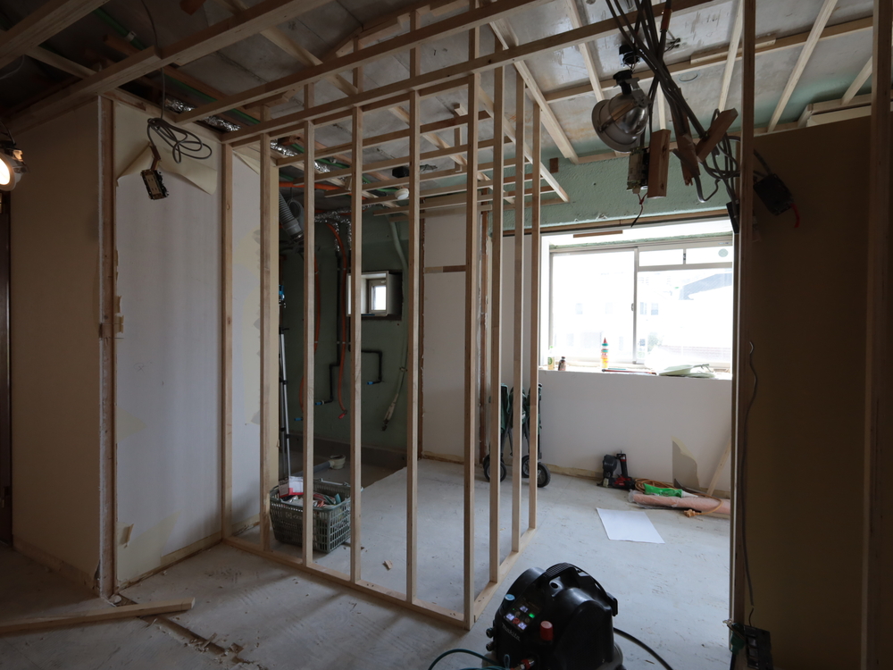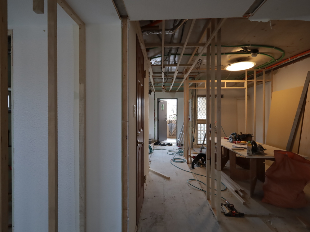 廊下の施工中