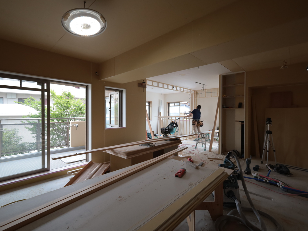リビングの施工中