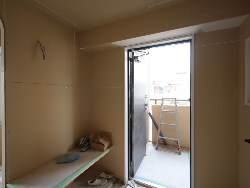 玄関の施工中