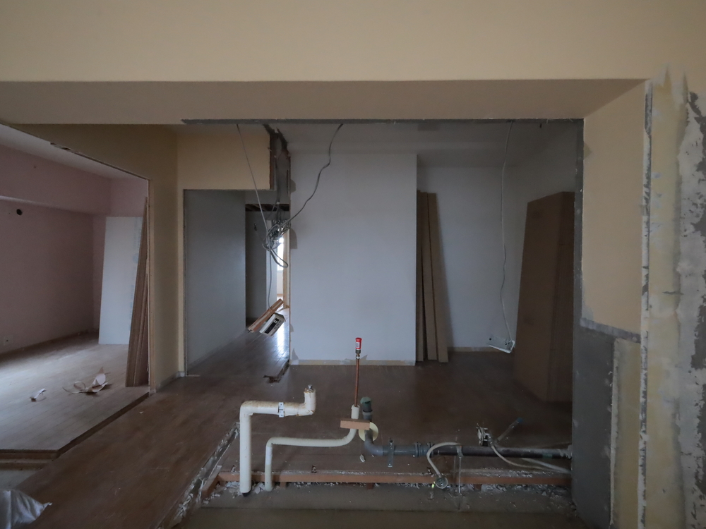 キッチンスペースの施工中
