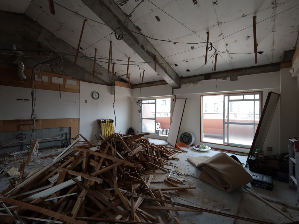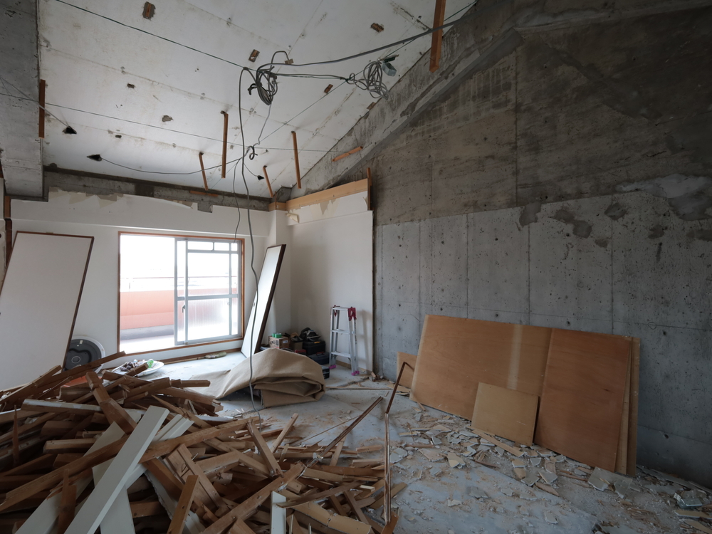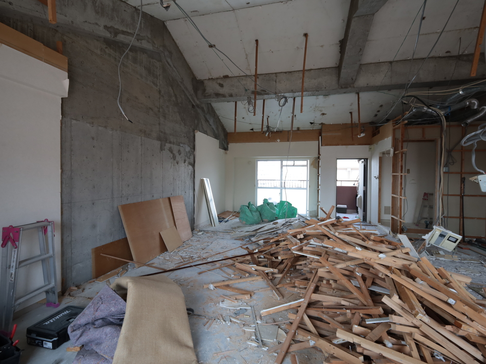 リビングの施工中