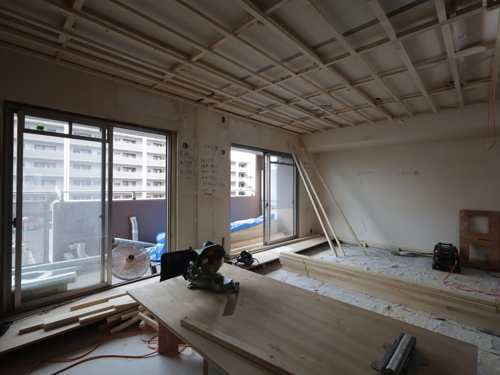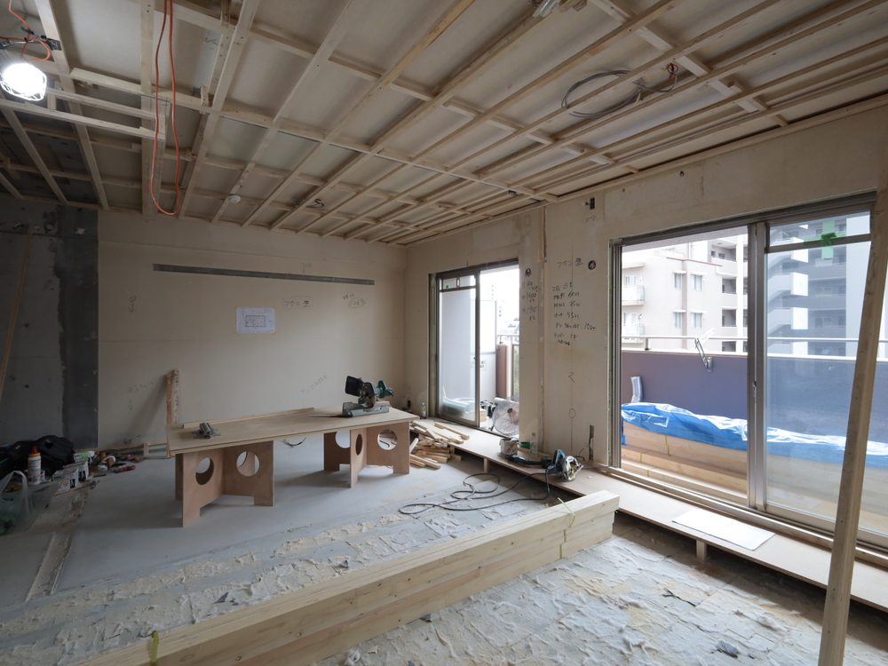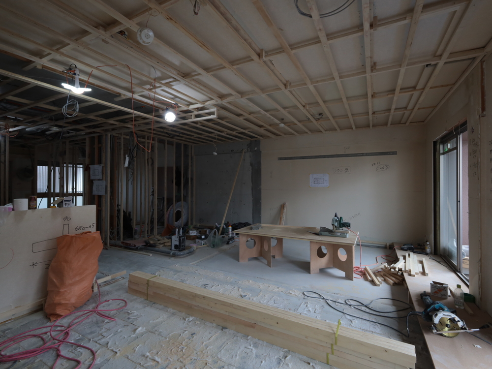 リビングの施工中