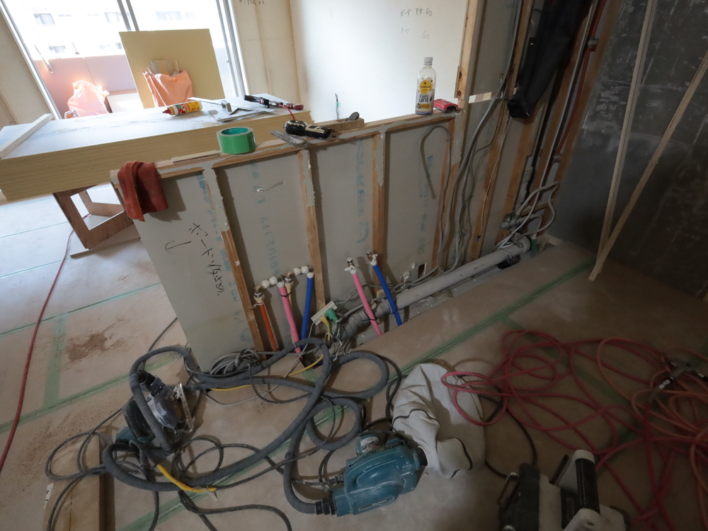 キッチンスペースの施工中