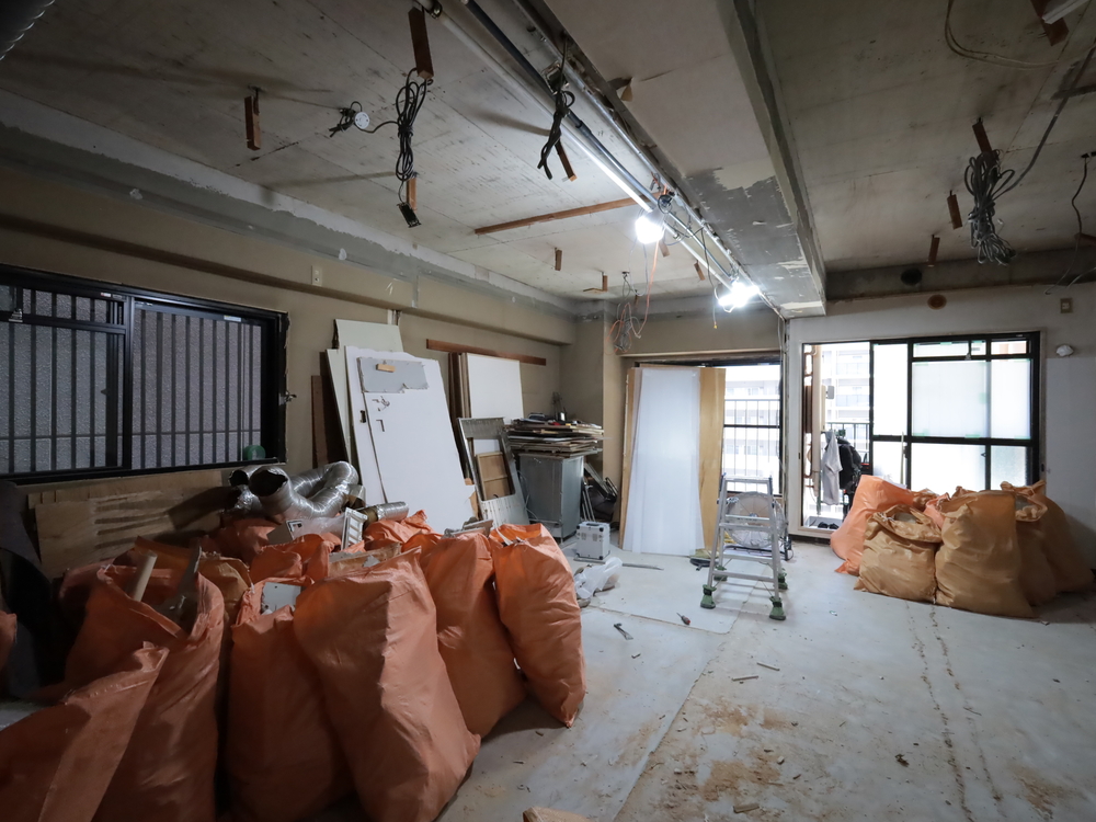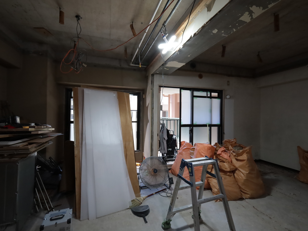 リビングの施工中