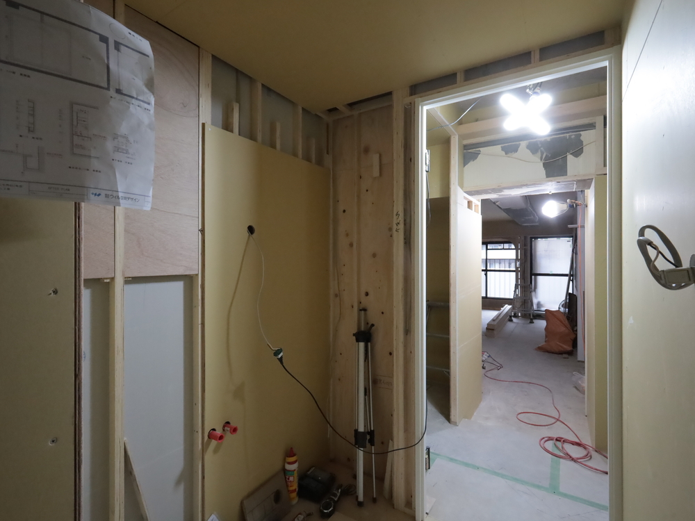 洗面室の施工中