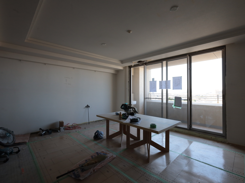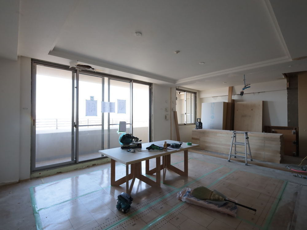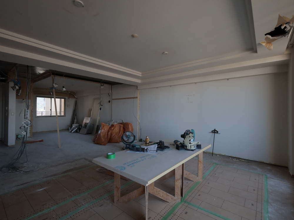 リビングの施工中