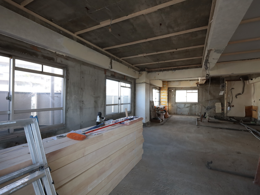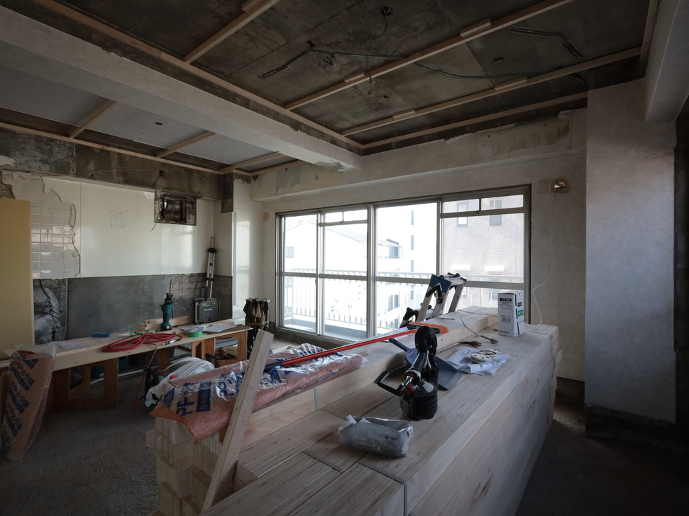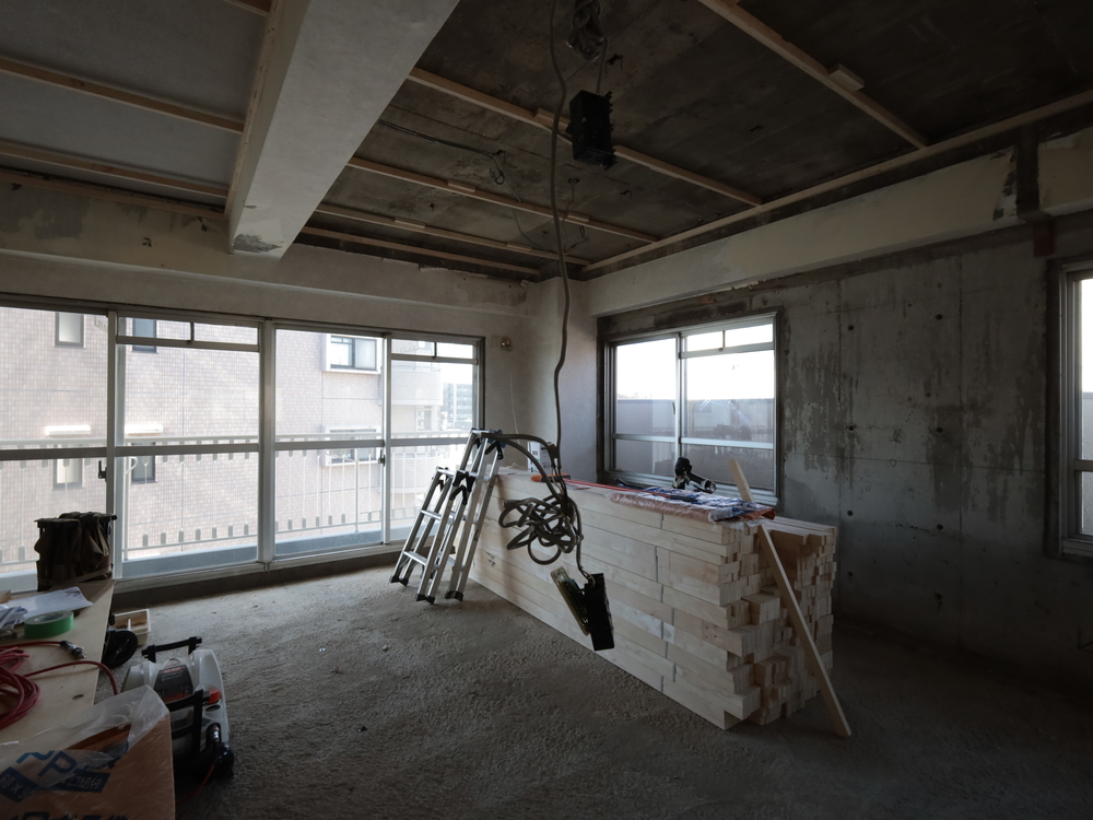 リビングの施工中