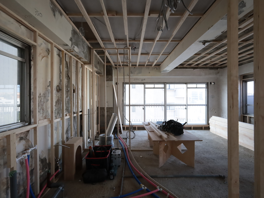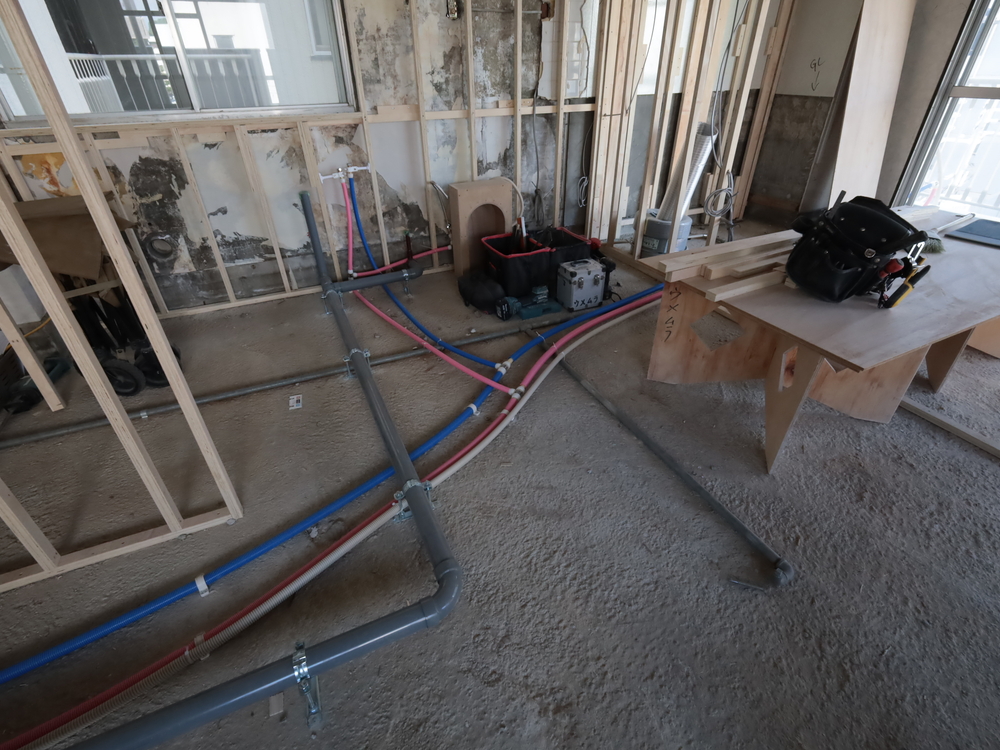 キッチンスペースの施工中