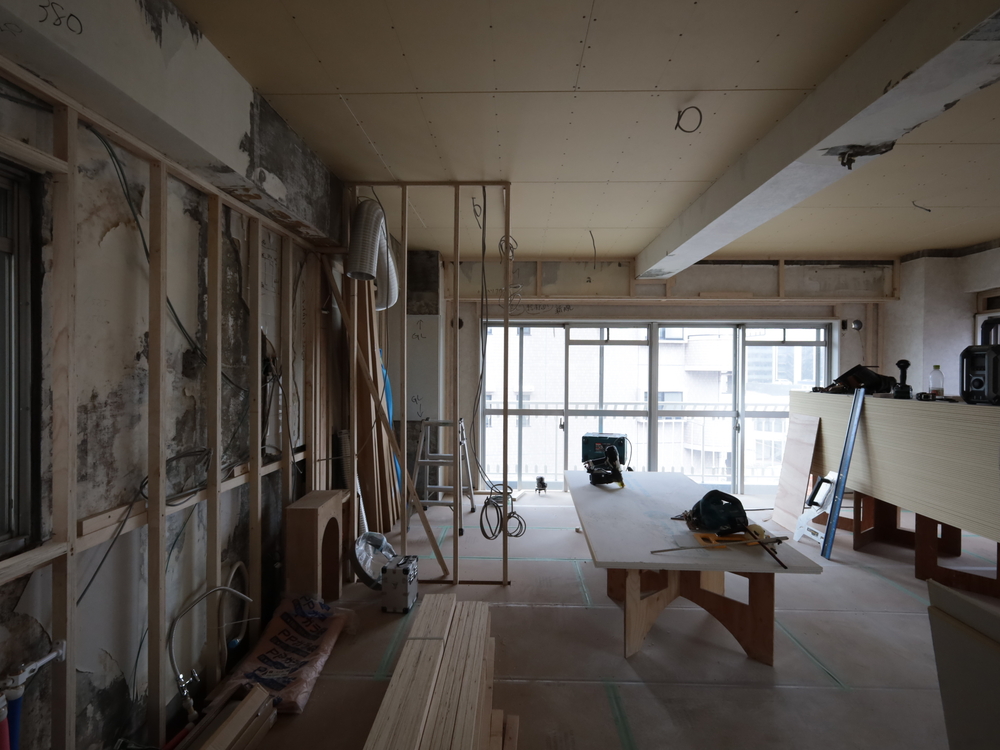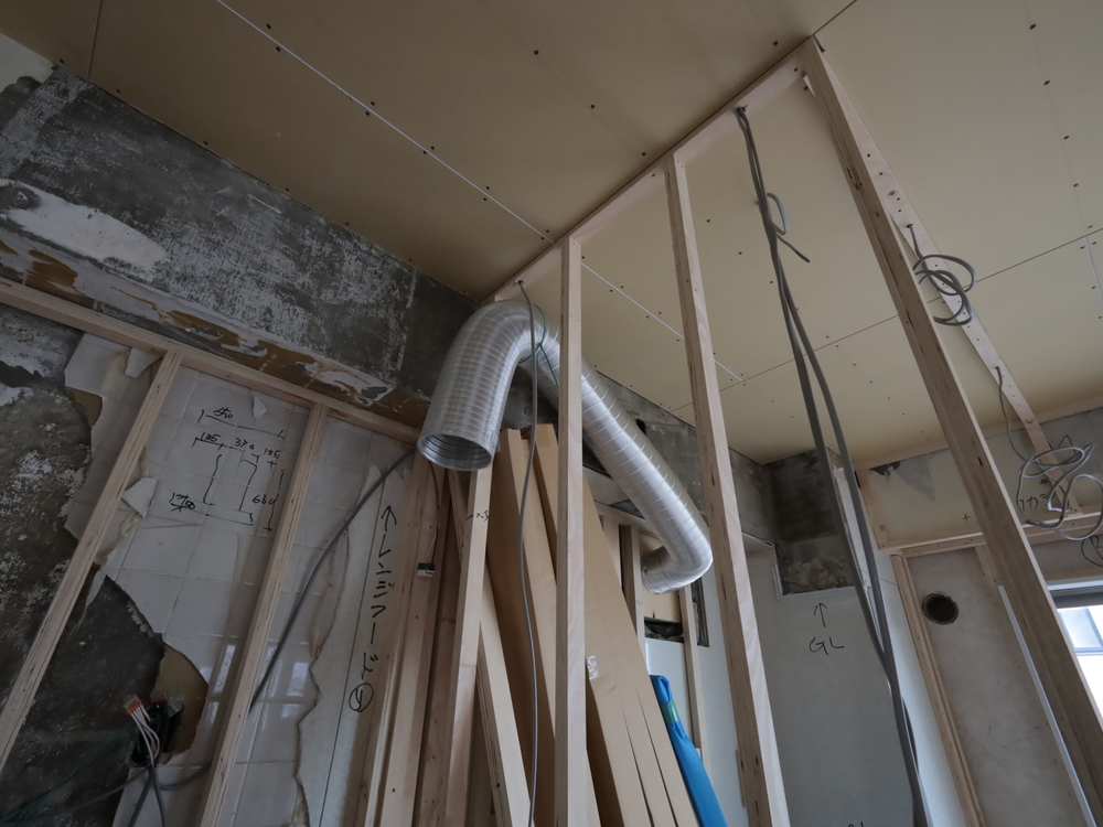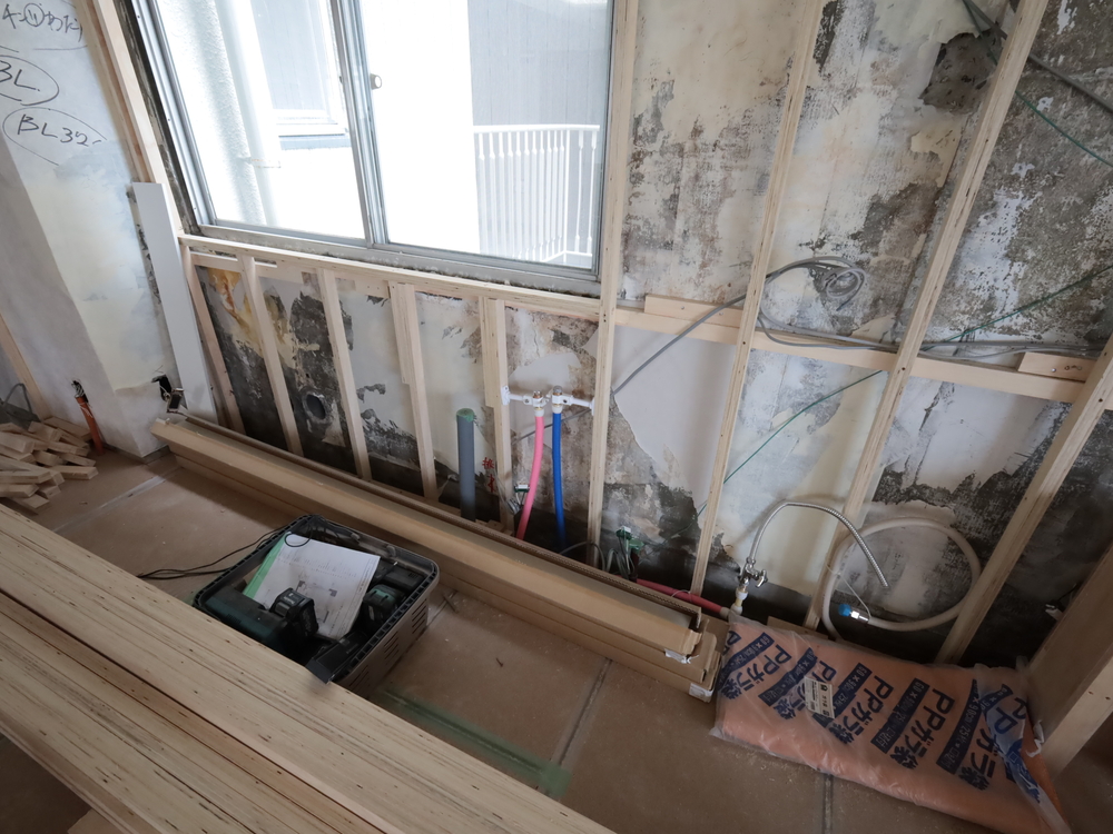 キッチンスペースの施工中