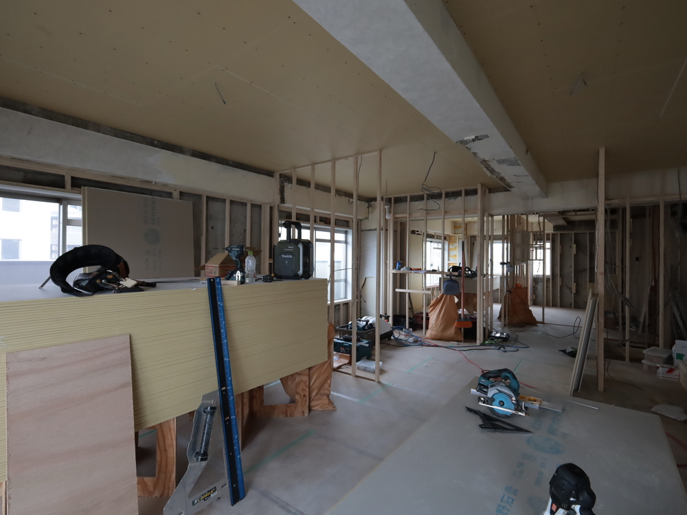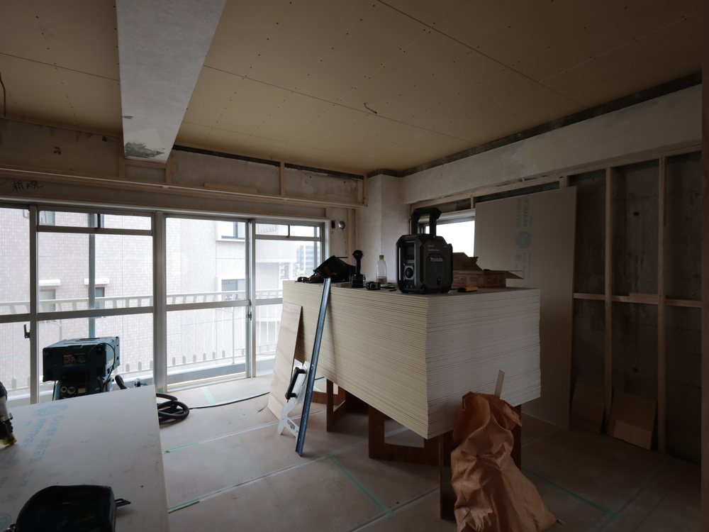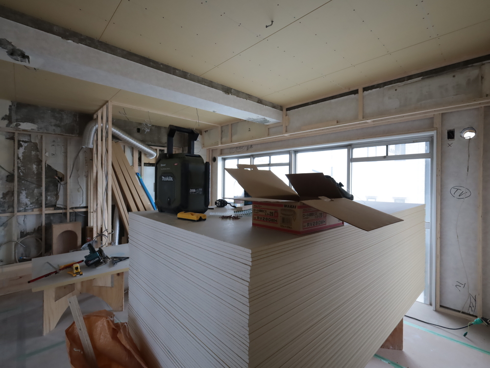 リビングの施工中