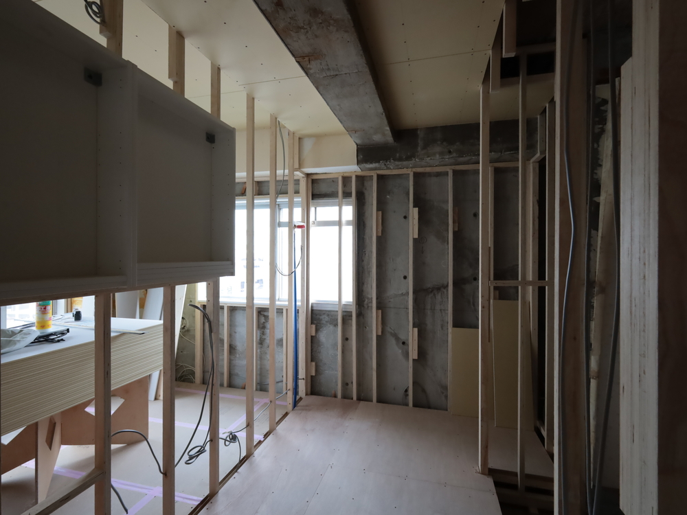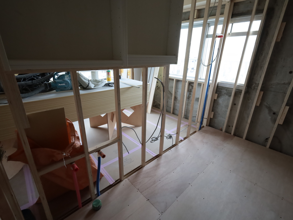 洗面室の施工中