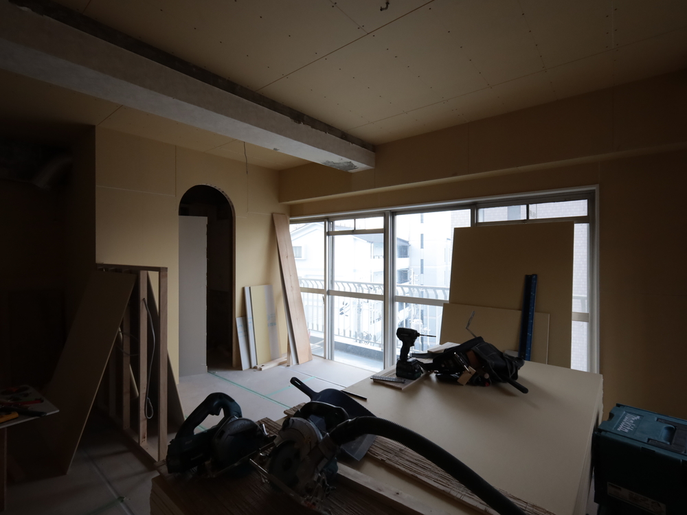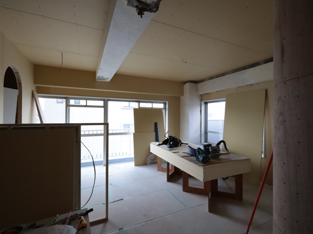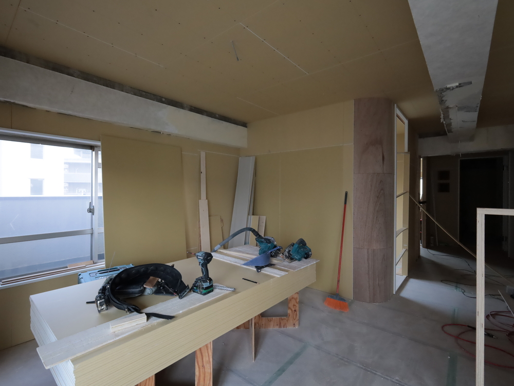 リビングの施工中
