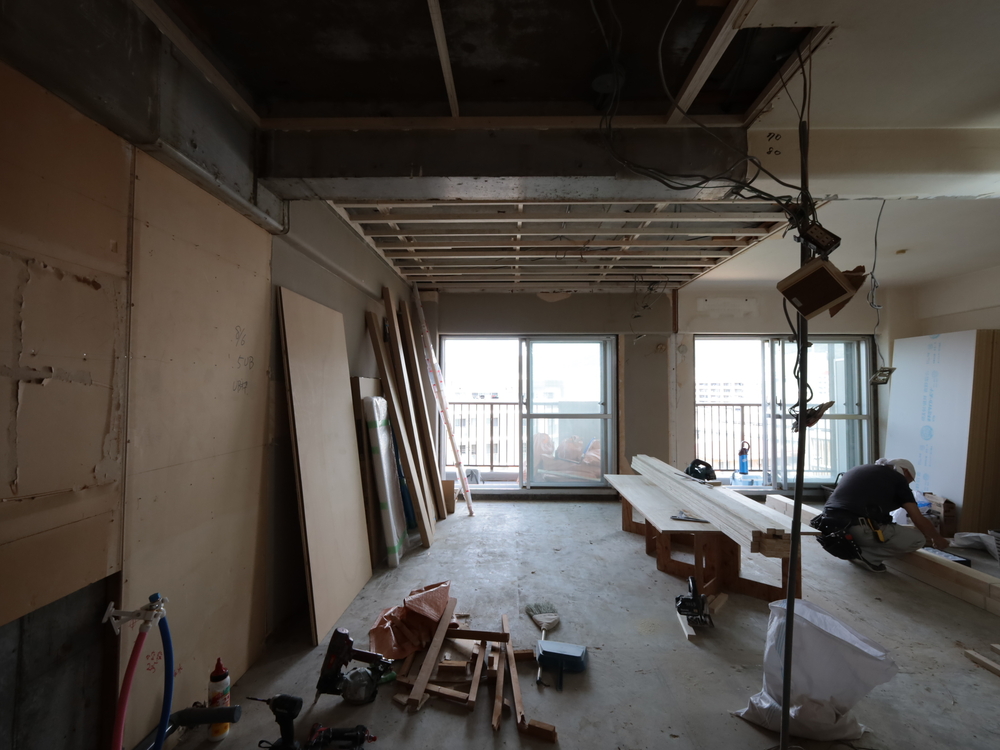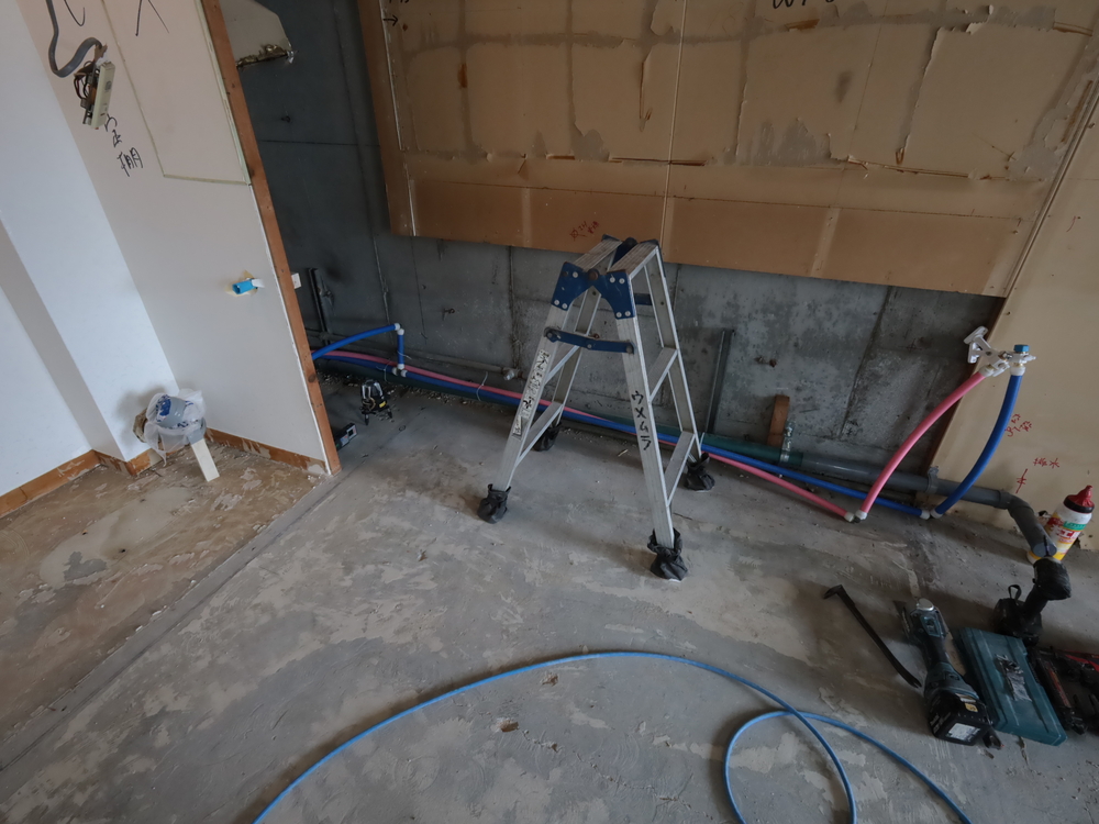 キッチンスペースの施工中