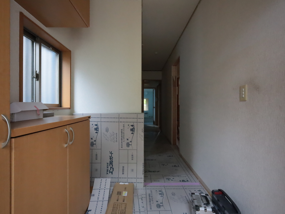 廊下の施工中