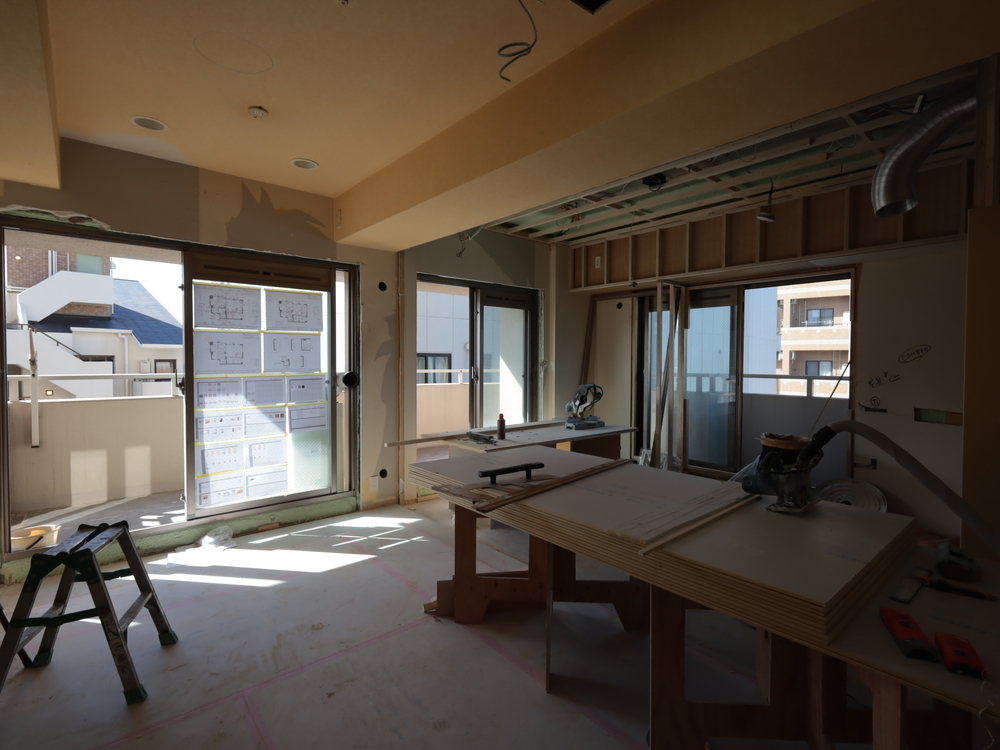 リビングの施工中