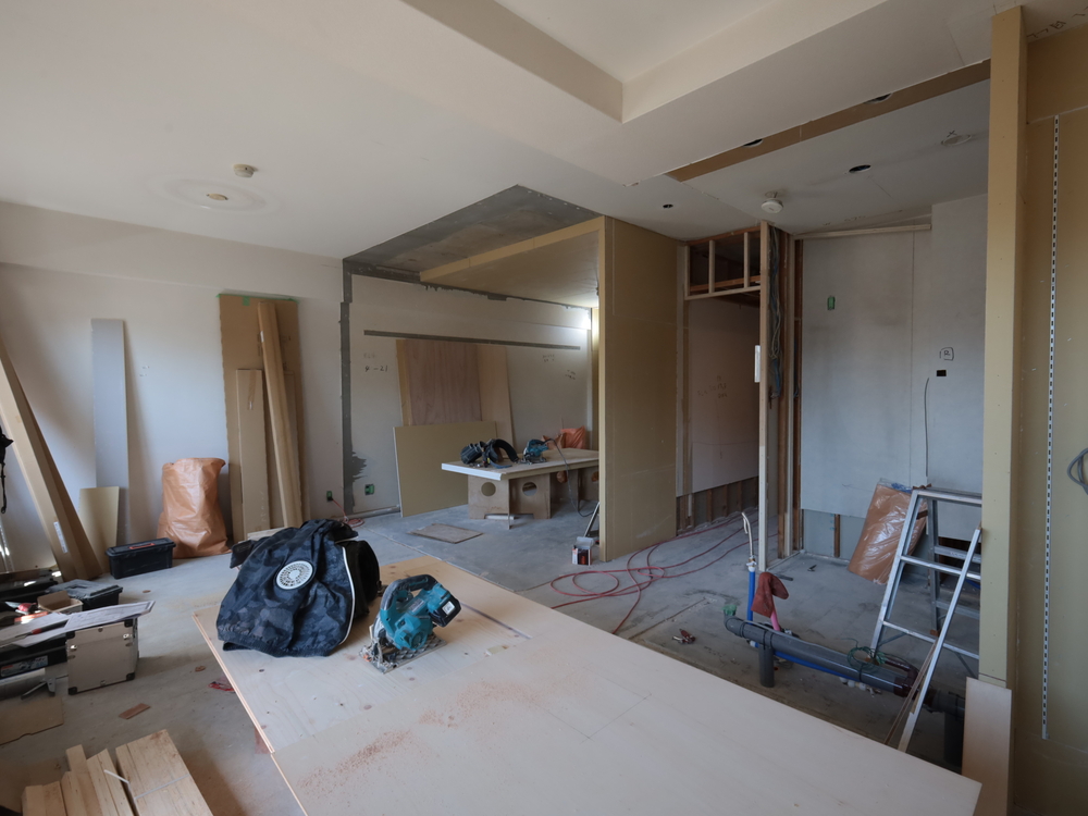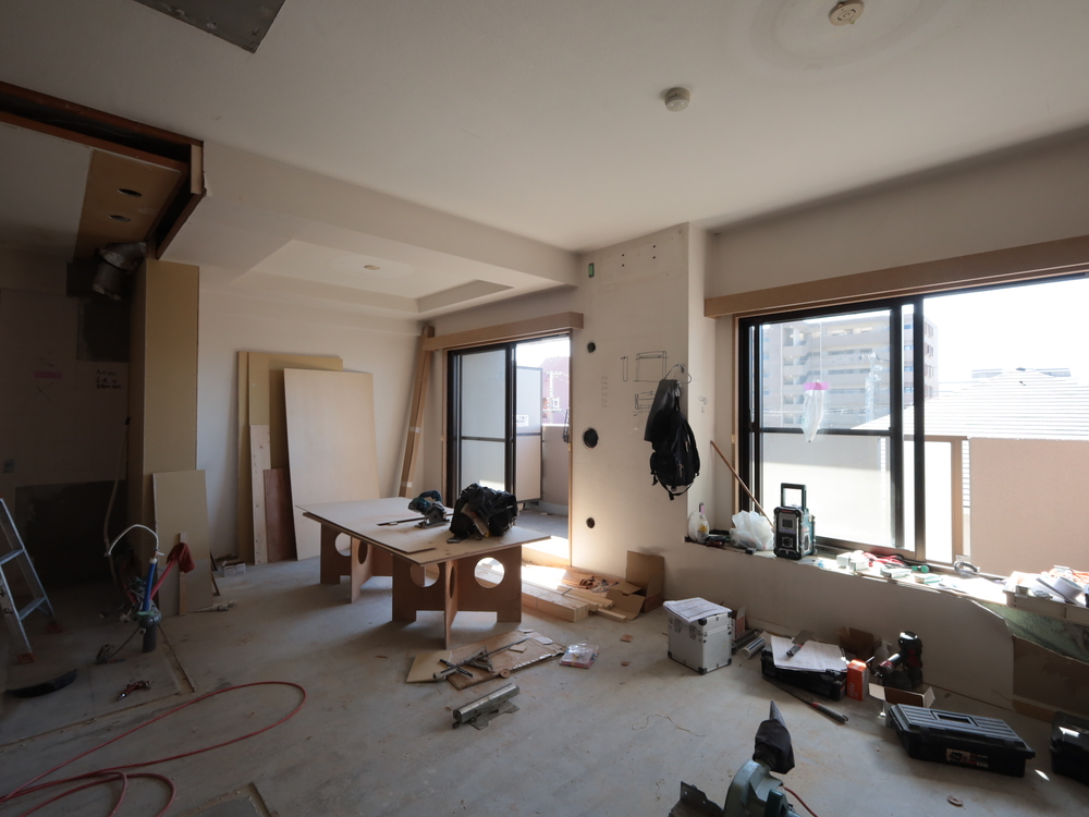 リビングの施工中