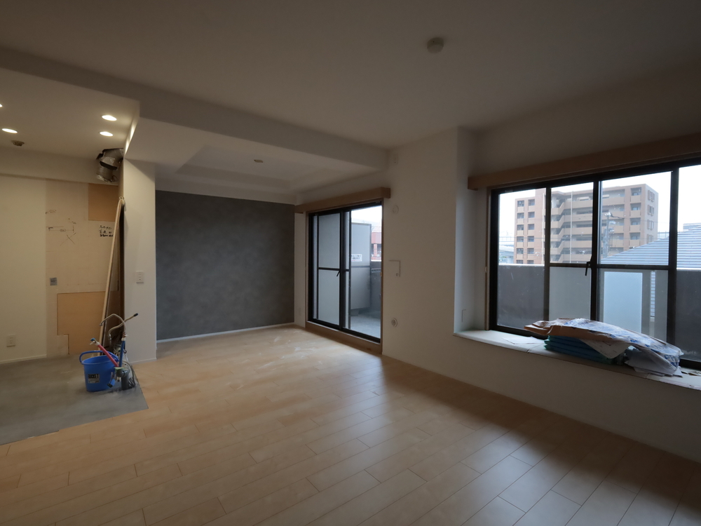 リビングの施工中