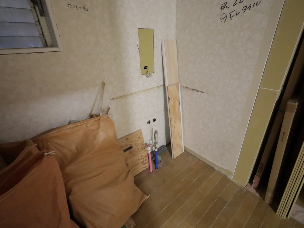洗面室の施工中