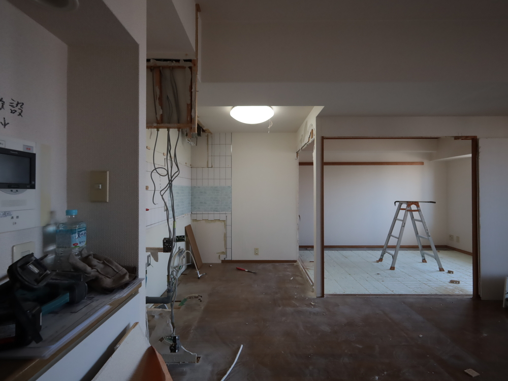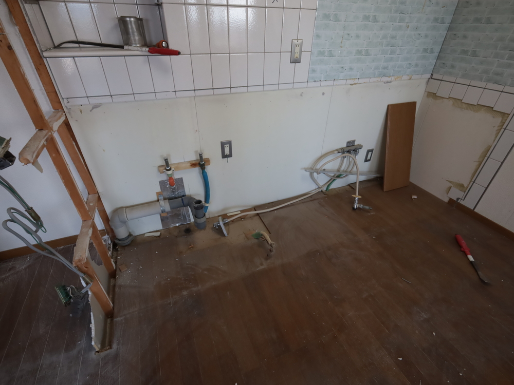 キッチンスペースの施工中