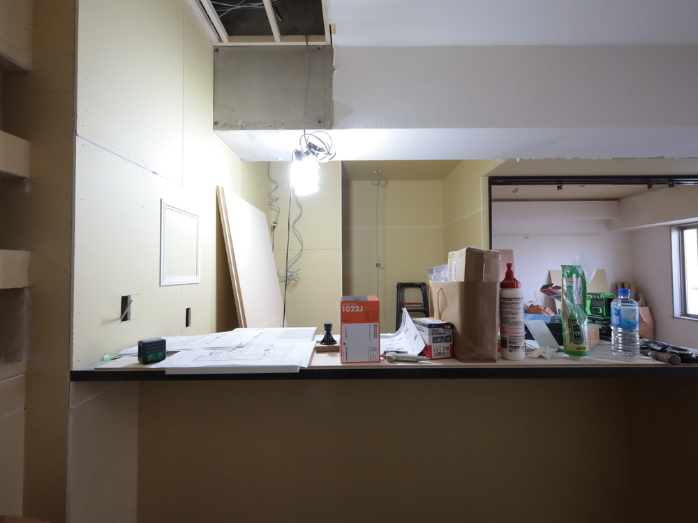 キッチンスペースの施工中
