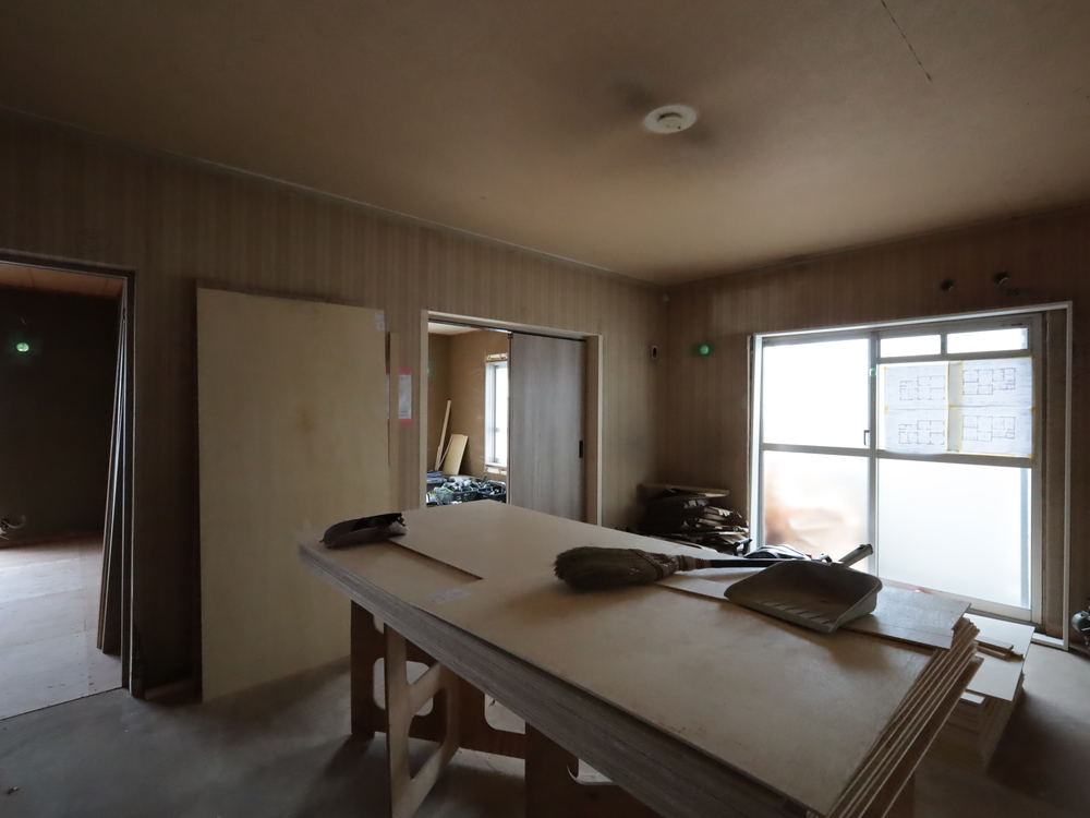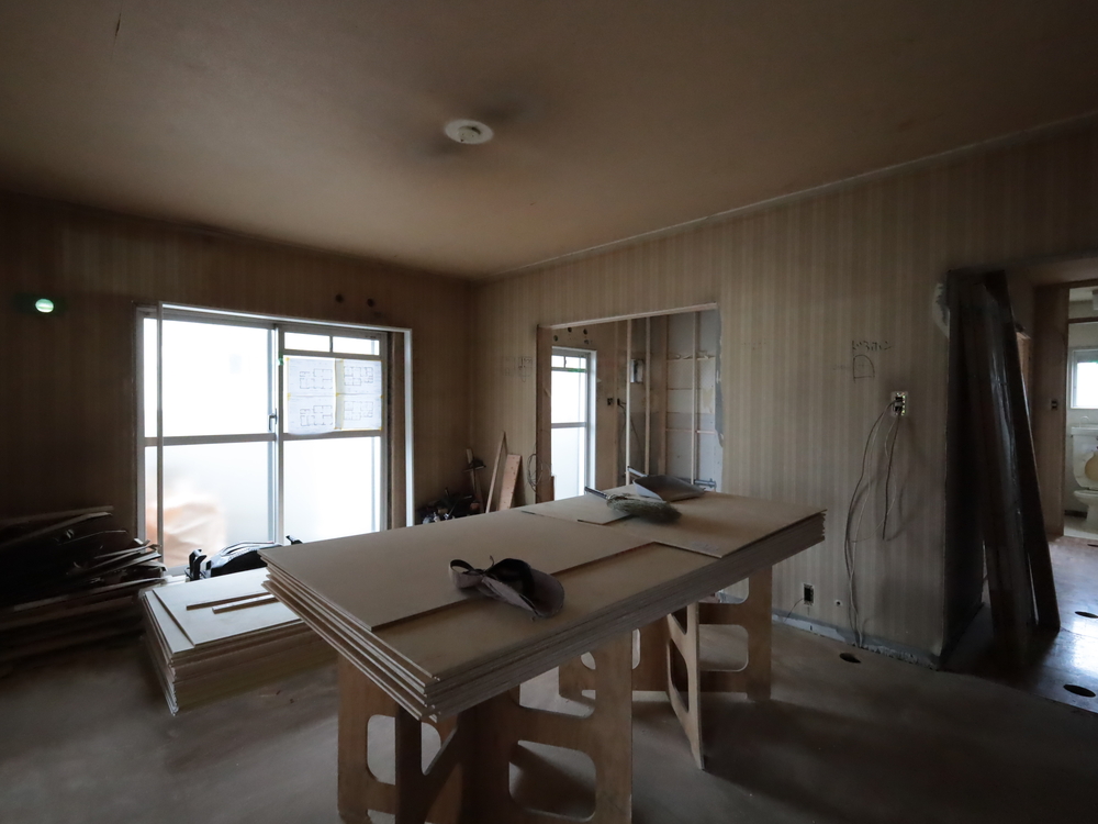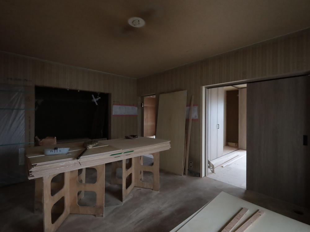 リビングの施工中