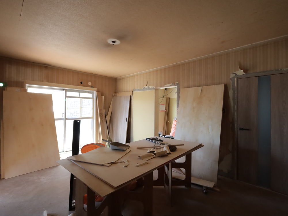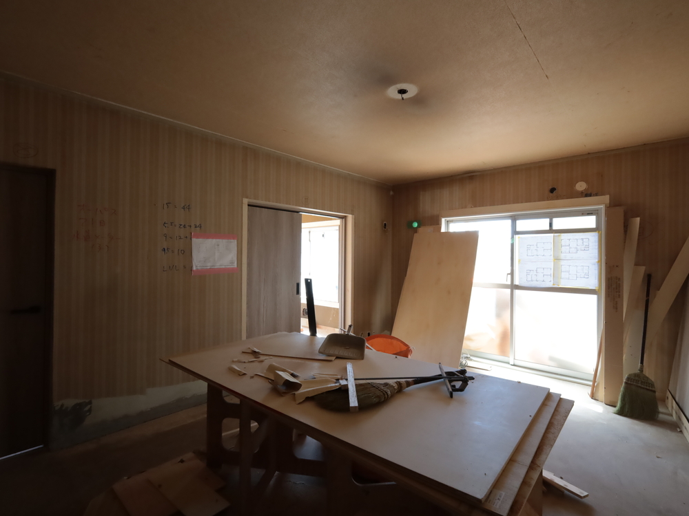 リビングの施工中