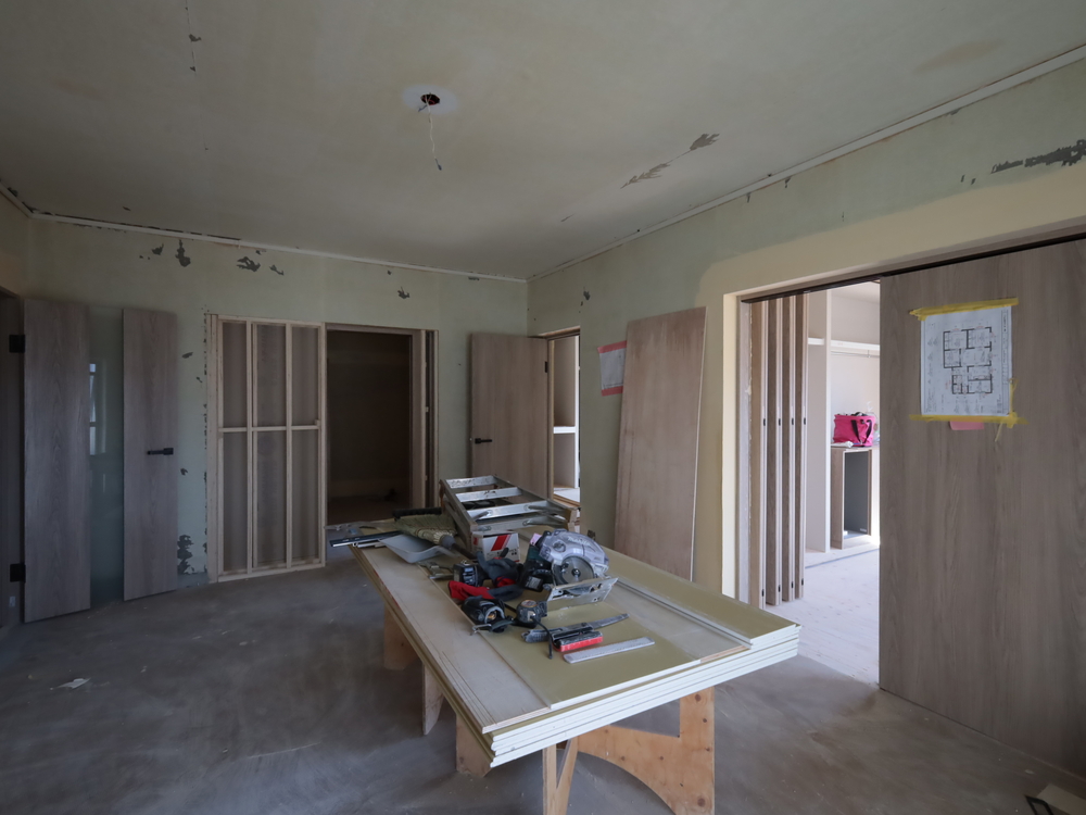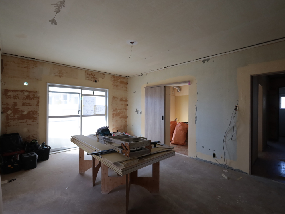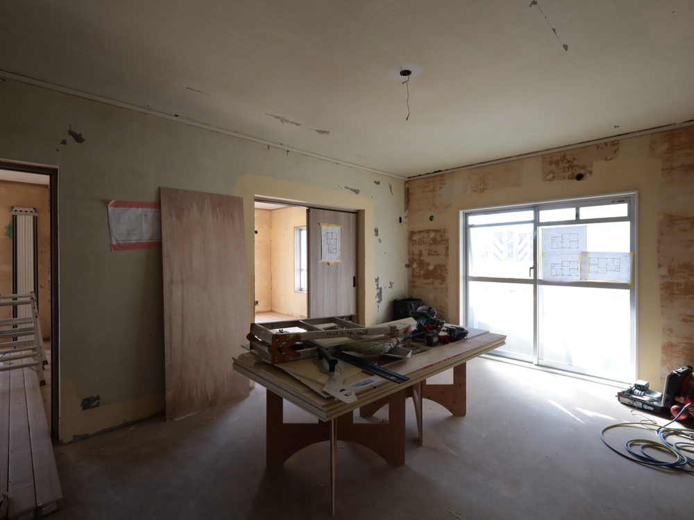 リビングの施工中