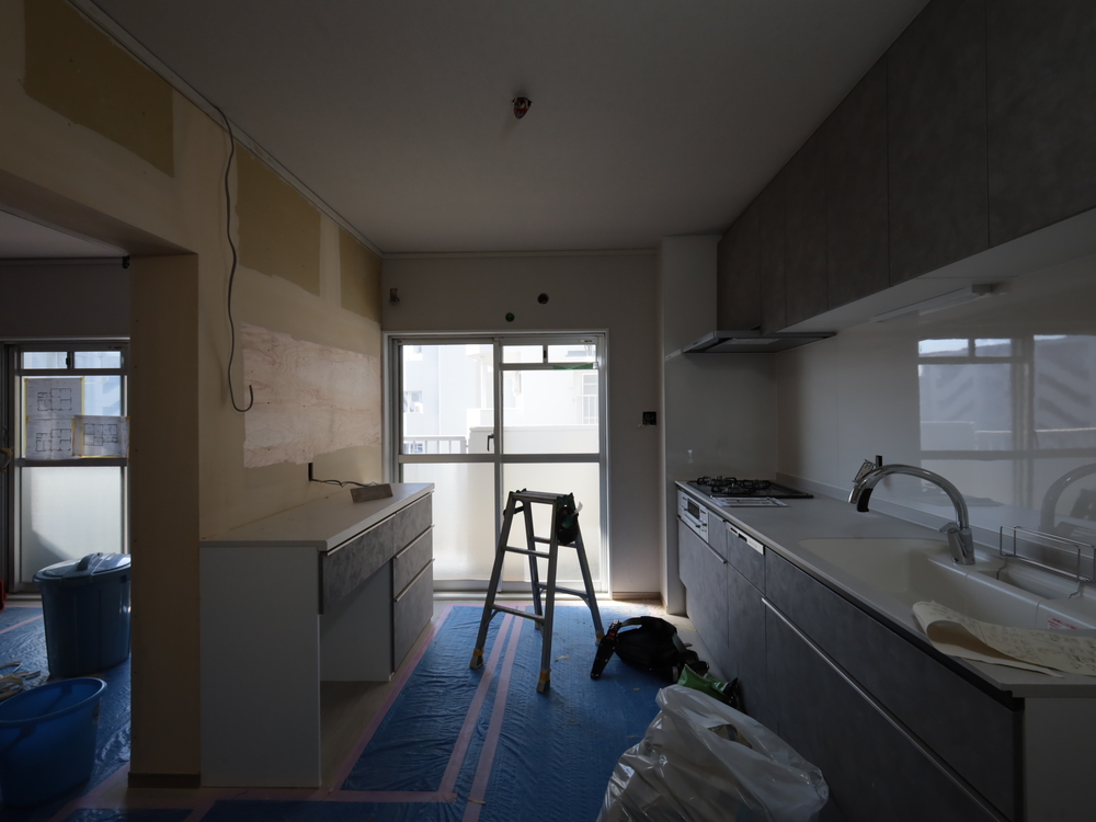キッチンスペースの施工中