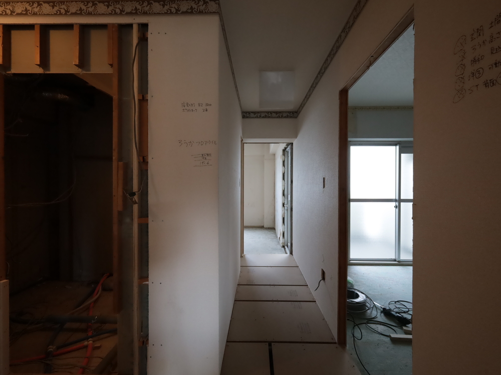廊下の施工中