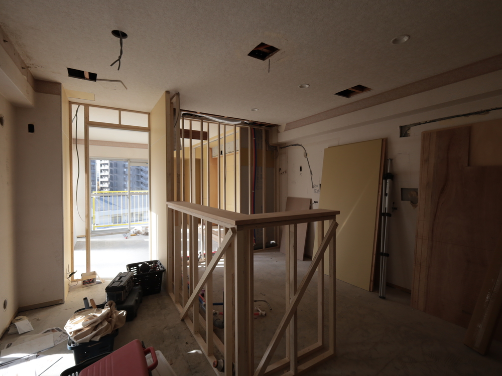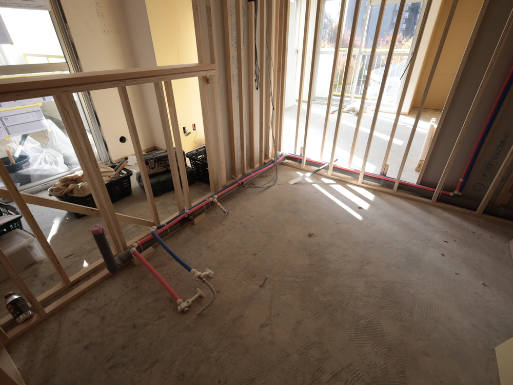 キッチンスペースの施工中