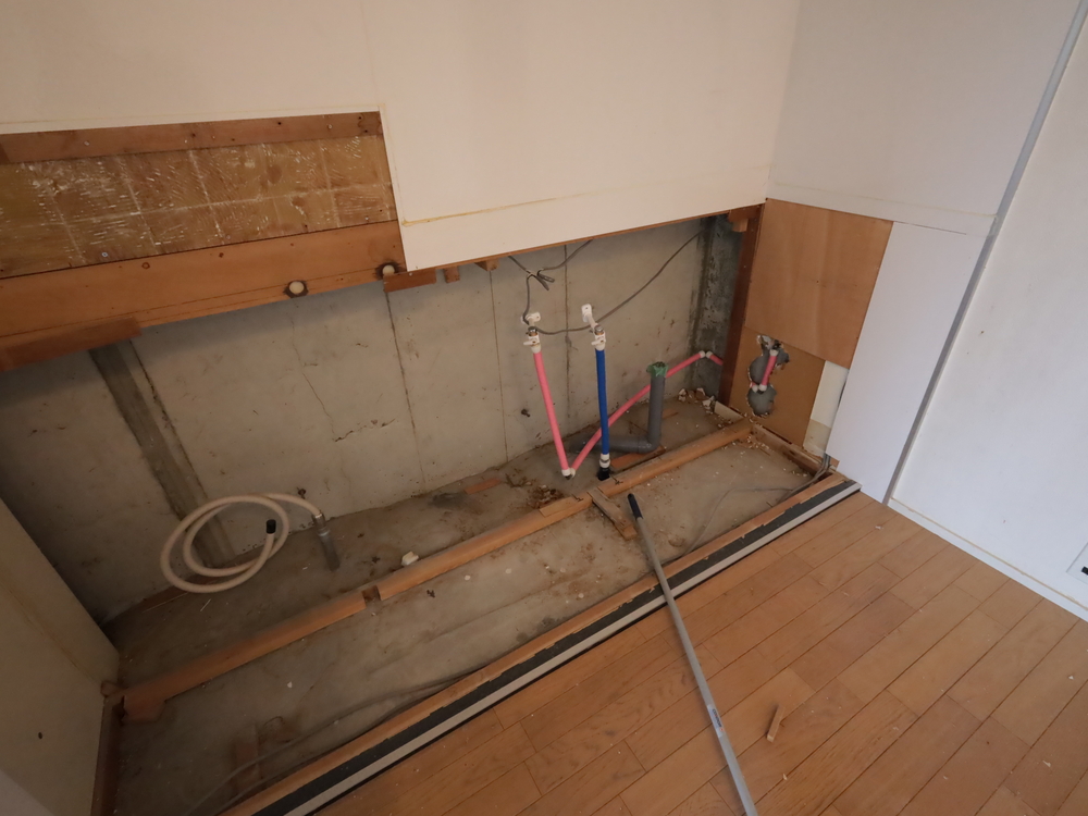 キッチンスペースの施工中