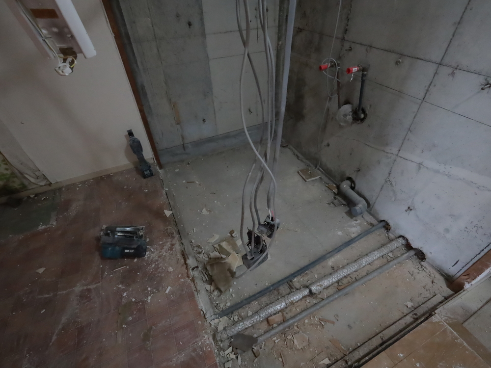 洗面室の施工中