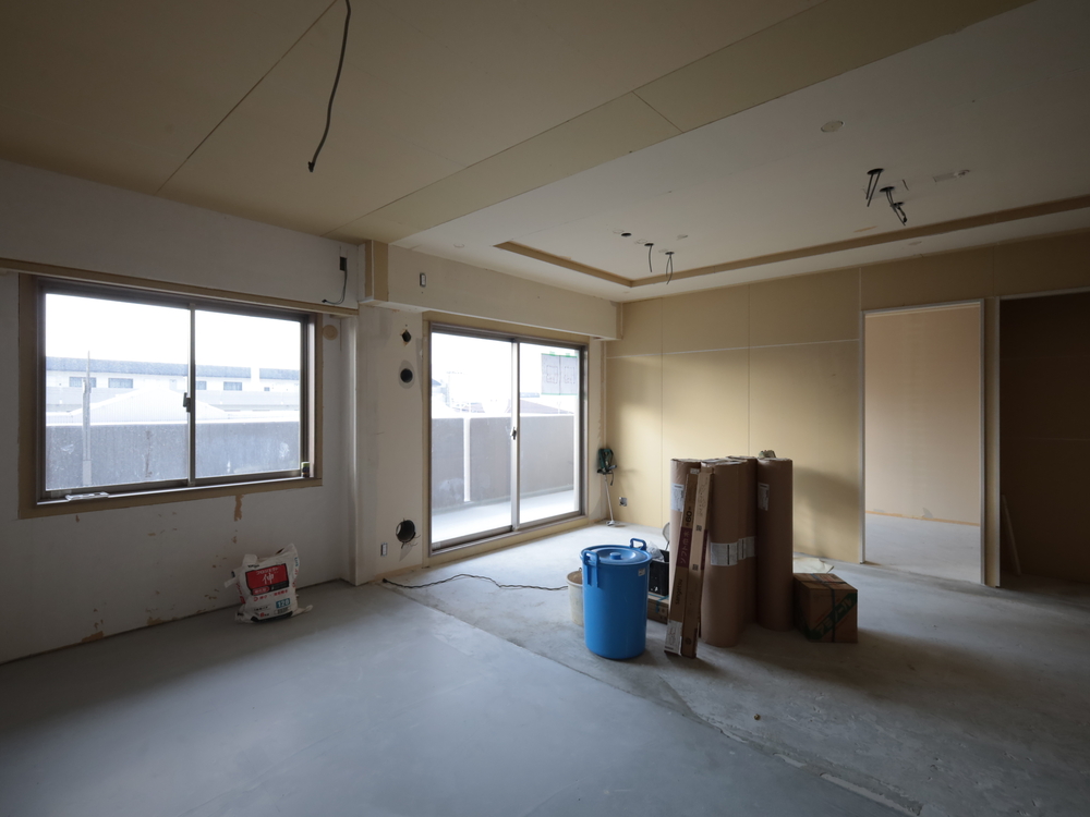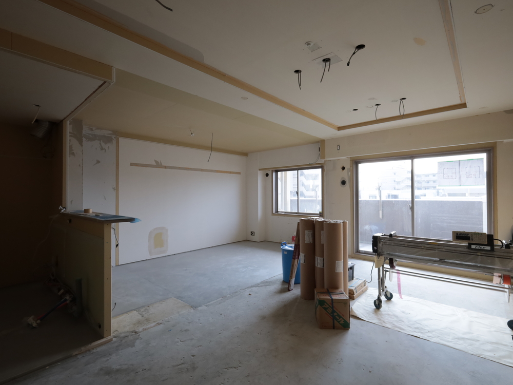 リビングの施工中